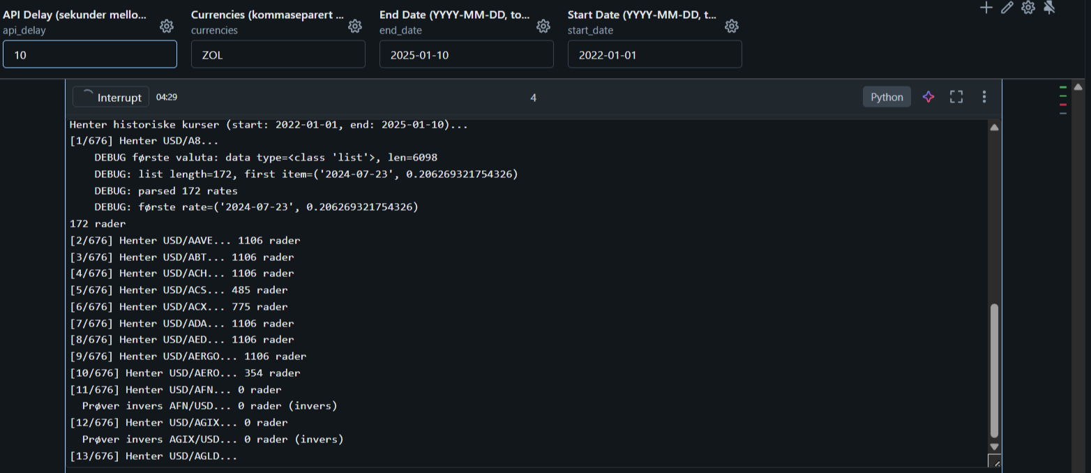 Kursdata samles inn via API og jobber er schedulerte til å gå på jevnlig basis
